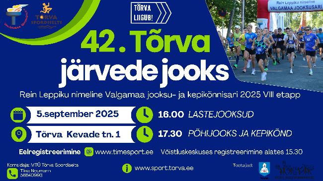 Täna, 6. septembril toimub 42. Tõrva järvede jooks - Rein Leppiku nimeline Valgamaa jooksu- ja kepikõnnisari 2025 VIII etapp.