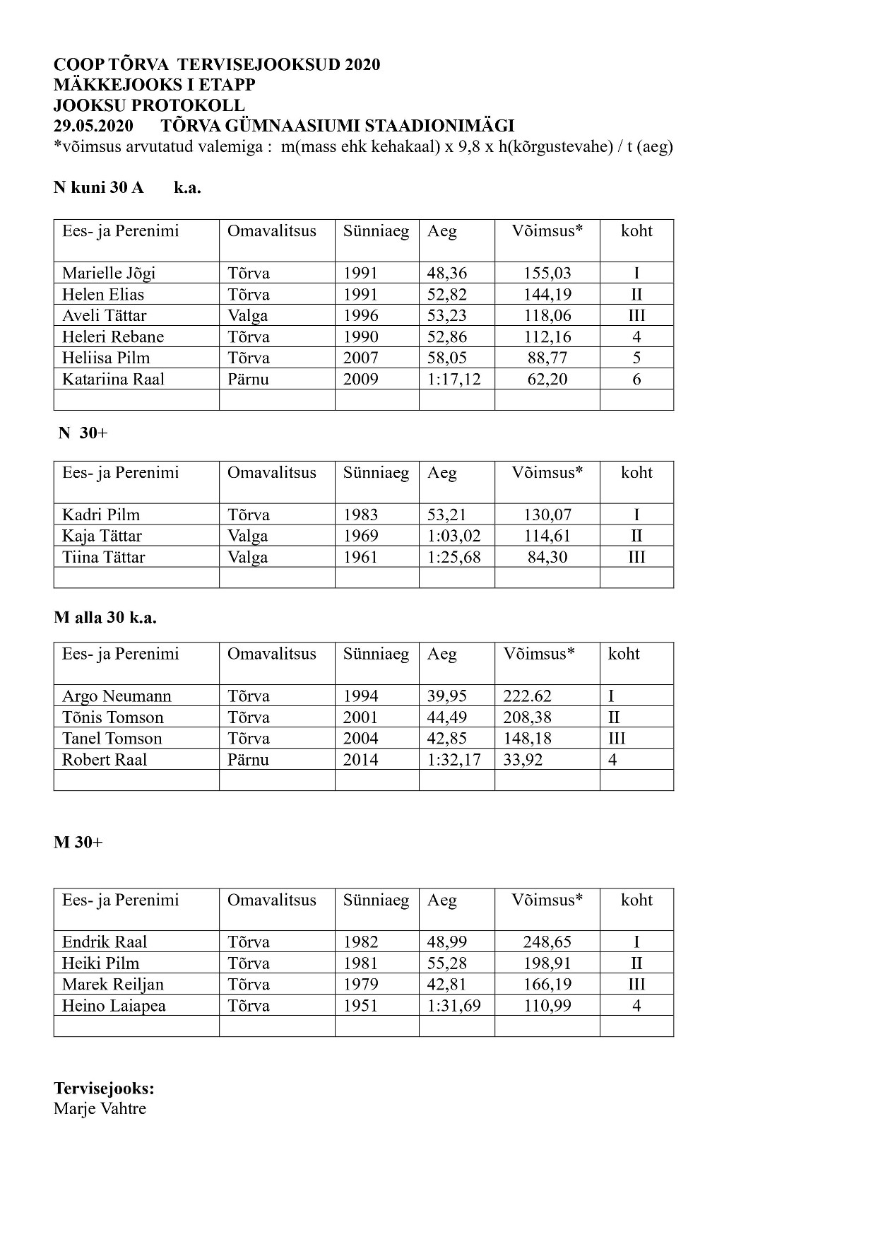 - 04.08 - Tõrva maastikujooksud I etapp - tulemused