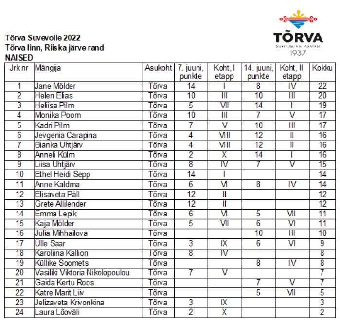 - 24.03 - Tõrva siseorienteerumise koondtabel