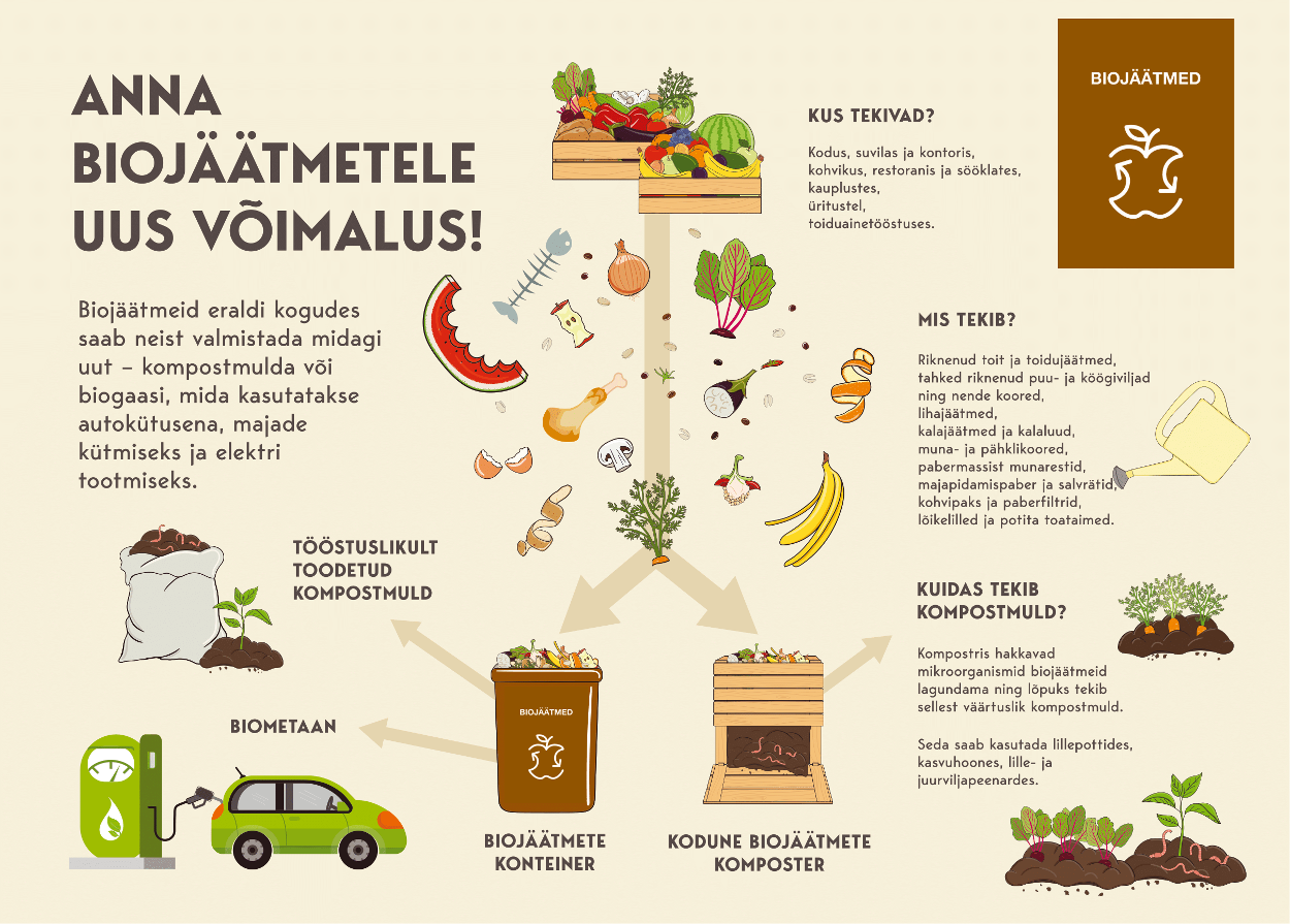 Eesti kodudes tekib igal aastal 300 kilogrammi jäätmeid inimese kohta. Sellest ligi kolmandiku moodustavad köögis ja toiduvalmistamisel tekkivad biojäätmed. Biojäätmeteks on näiteks riknenud puu- ja köögiviljad ja nende koored, liha- ja kalajäätmed ning luud, munakoored, kohvi- ja teepaks koos filtriga, majapidamispaber ja salvrätid, aga ka lõikelilled ja ilma potita toataimed koos mullaga. Selliseid jäätmeid ei tohiks panna majapidamises tekkiva muu prügi hulka. Biojäätmete eraldi kogumine on kohustuslik ja äärmiselt vajalik. See on ka lihtsaim viis igaühel anda oma panus keskkonnahoidu.