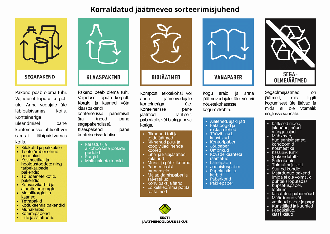 Olmejäätmeid tuleb liigiti koguda juba nende tekkekohas. Sellega tagame jäätmete kõrgema kvaliteedi ja parema ringlussevõtu võimaluse.